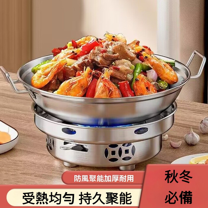 • 防風酒精火鍋爐 NT$1050 特厚大號防風酒精爐家用小火鍋乾鍋飯店專用商用不鏽鋼鍋仔鍋底座