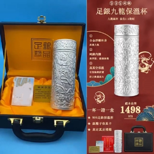 • 九龍百福銀杯 NT$1050 保溫效果差 喝涼水傷腸胃 居家客廳小聚 九龍百福银杯持久鎖溫 啜飲暖水舒適又養生