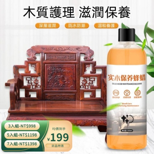 • 實木保養蜂蠟 NT$850 【實木保養蜂蠟】深層滋潤,溫和養護,防水防裂防霉,增加色澤
