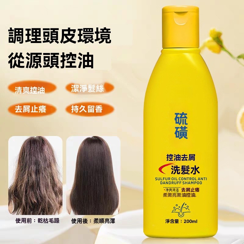 硫磺控油去屑洗髪水,蕴含硫磺,控油蓬鬆,止癢除螨!清潔頭皮、油脂、頭屑,多重護髪精華,外凈油屑,内潤髮絲!