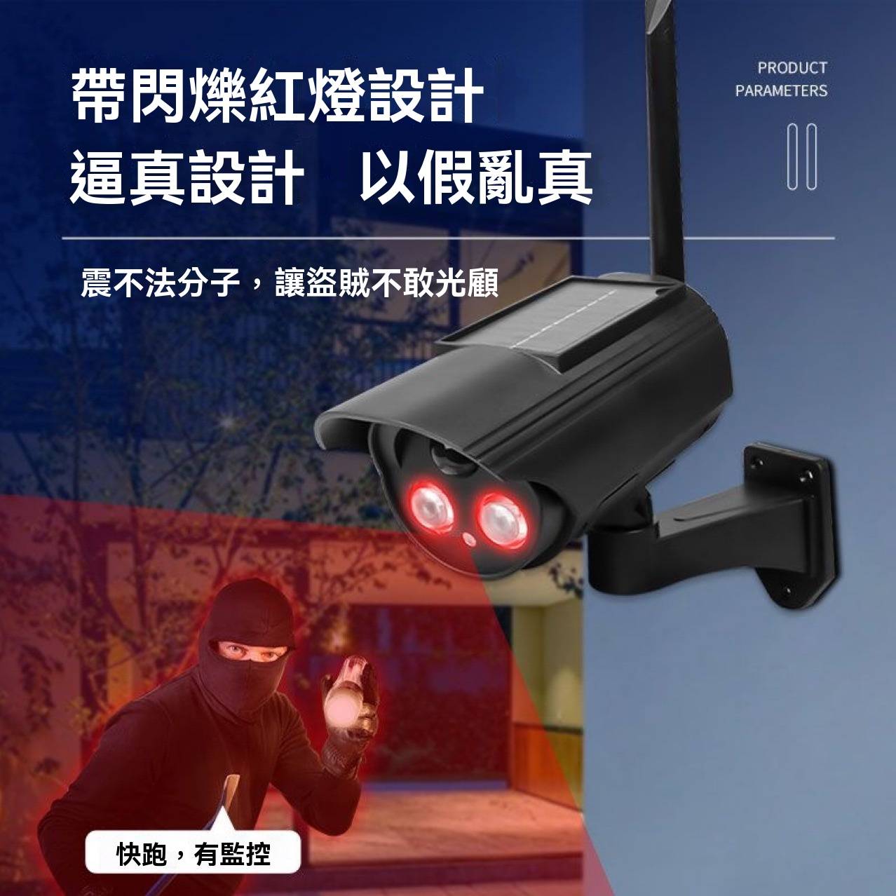 太陽能仿真攝像頭,防水可旋轉假監視器,自備太陽能燈led燈