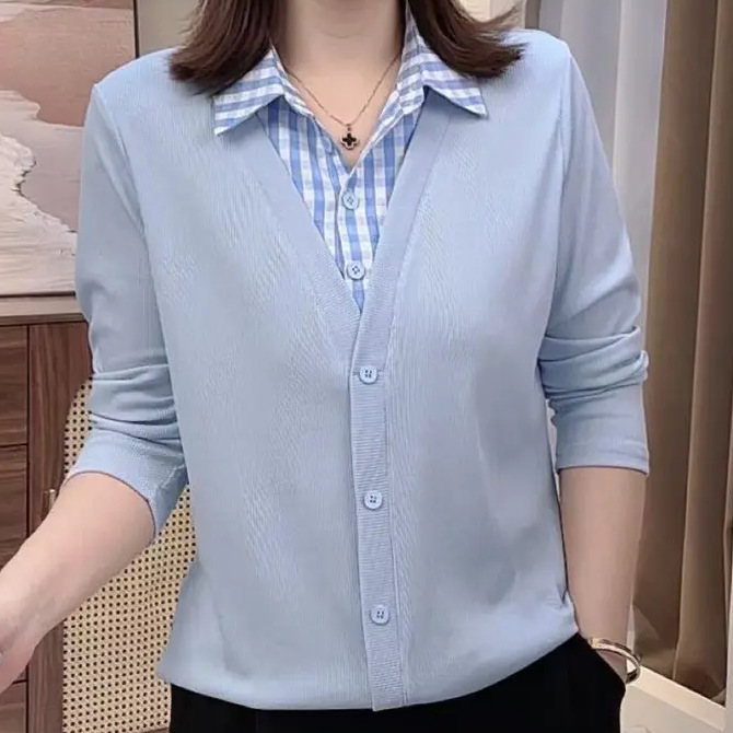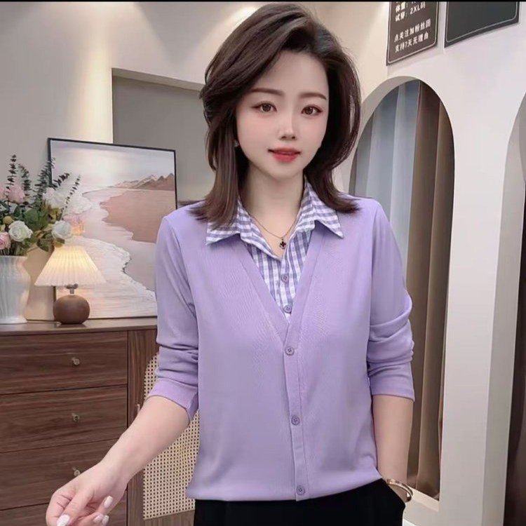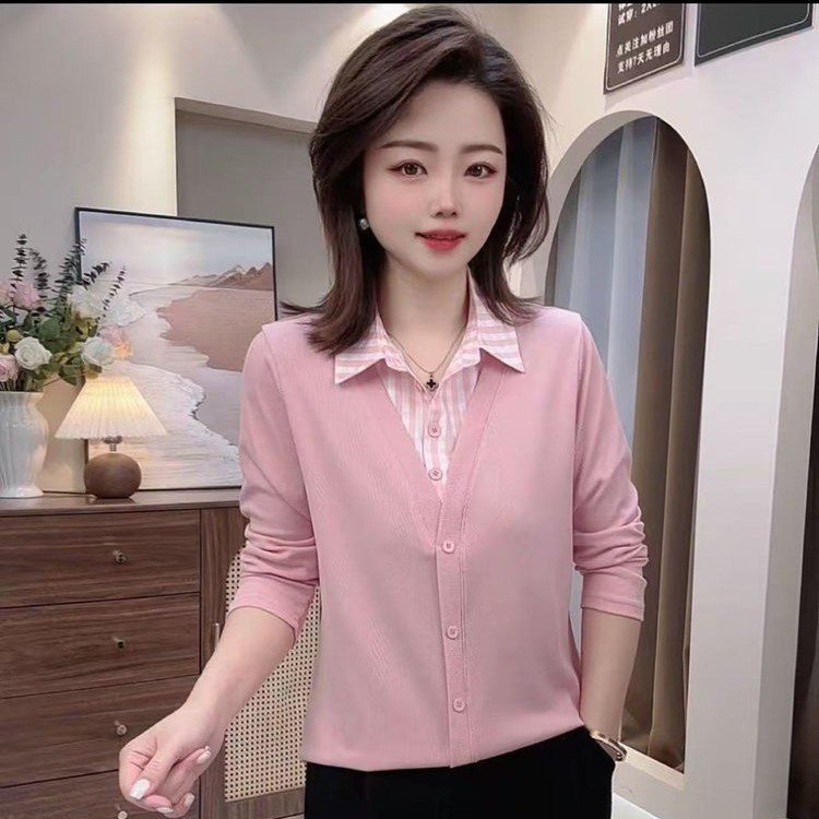 2025新款休閒減齡條紋長袖 柔軟親膚棉料 寬鬆舒適 藏肉顯瘦 穿出隨性慵懶感
