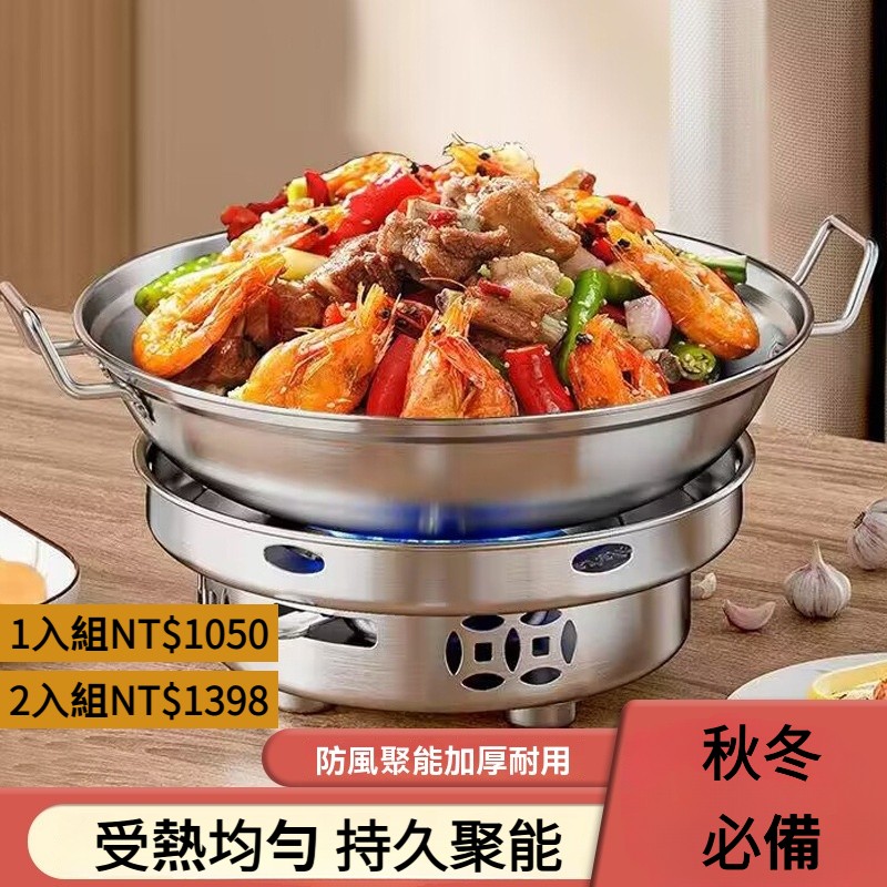 [2]【防風酒精火鍋爐】酒精爐【防風聚能】不鏽鋼防風爐+24有蓋2入組 NT$1398